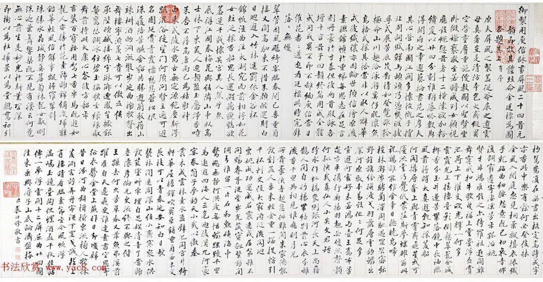 裘曰修书高宗纯皇帝御制用庾信咏,25×190厘米,故宫博物院藏。 裘曰修(1712-1773),字叔度,江西新建人。乾隆四年(1739)进士,历任礼、刑、工三部尚书,深得乾隆帝信任,乾隆称赞他”品学端醇,才献练达”。曾任《清会典》和《四库全书》总裁,并奉敕编纂《西清古鉴》《钱录》《秘殿珠林》《石渠宝笈》《墨妙轩法帖》等。裘曰修多次参与...