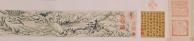 历代国画董其昌关山雪霁图卷5 《关山雪霁图》卷,明,董其昌绘,纸本,墨笔,纵13厘米,横143厘米。 本幅自识:“关仝关山雪霁图在余家一纪,余未尝展观。今日案头偶有此小侧理,以图中诸景改为小卷,永日无俗子面目,遂成之。乙亥夏五。玄宰。”钤“董□□”印,印文不可辨。 鉴藏印钤“仪周珍藏”、“乾隆御览之宝”、“嘉庆御览之宝”、“重华宫鉴藏宝” ...2026-03-27