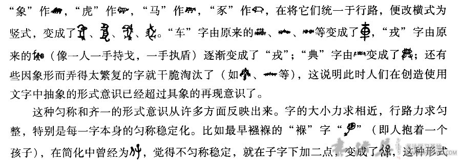 2书契意识的产生 先民怎样以一音一字的形式将文字创造出来,并最后以大小相等的形式组成行路、篇章?每当我面对那些古老的文字形式,就常常产生一种探幽究微的思想。先民的造型意识、审美追求、最早的书法美学思想,不正是从这里表现出来的吗? 造字,首先就碰到几个很现实的问题: 一、用什么手段去象形...