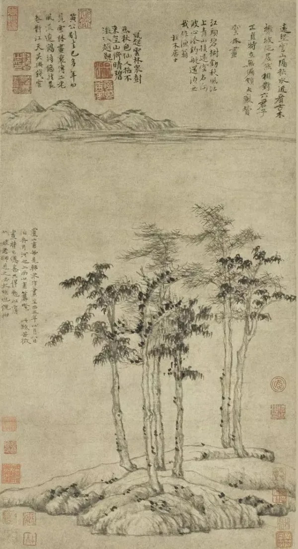 明 蓝瑛 《山水册》十二开选一 31cm×24.8cm 纸本设色 1655 年 荣宝斋藏