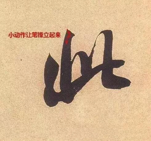 锋,是笔力集中到达,墨水集中流注的地方。善用笔者,能使笔站起来以锋芒运使,这叫“立峰”,笔锋挺而健,有效得传达指腕的力量。在曲张之间“杀”入纸中,获得力透纸背,入木三分的效果,如不能发挥锋的用场,单以笔腹扫顿按,笔画必质感薄弱,墨象虚浮。