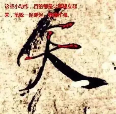 “立锋”关健在善于利用笔毫的弹性,因势利导,更关系到功力,功力到时,虽极柔长锋羊毫亦铮铮作弹。初学者可能开始时体会不到锋端的弹力,锋立不起来,可用薄长如竹蔑一类柔而有弹性之物,做用力压下又竭力撑起的动作,注意力放在尖端上,领会其运动的技巧,再运用到毛笔上,相信不难掌握。