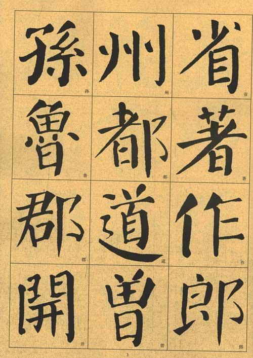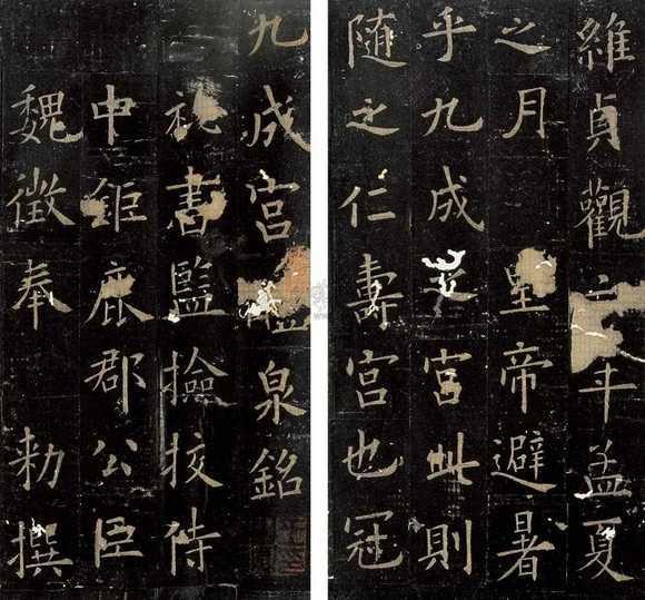 另外,初学者也要注意一个问题,就是方笔、圆笔在一种字体中没有绝对的区分,既不可能绝对的方笔,也不可能绝对的圆笔,而是以谁为主。如颜真卿楷书《勤礼碑》以圆笔为主,但偶尔也用方笔。欧阳询的楷书《九成宫》以方笔为主,但有时也用圆笔。