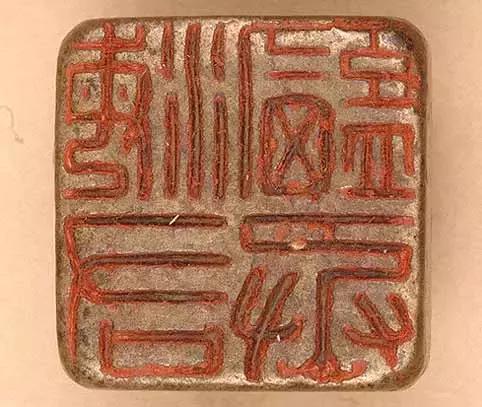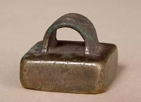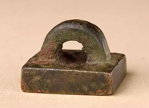 「渭成令印」铜印,印面2.3□2.3cm,通高1.9cm。 印铜铸,方形,鼻纽。印文为汉篆字体,白文,两竖行排列,右上起顺读「渭成令印」四字,「令印」二字末笔下折,为西汉印文特点。 此为西汉时县官印。