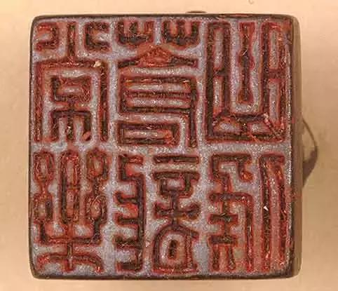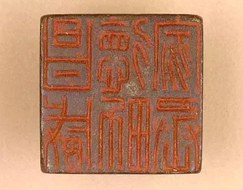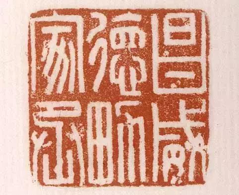 「昌威德男家丞」铜印,印面2.3□2.3cm,通高1.8cm。 印铜铸,方形,瓦纽。印文为汉篆字体,白文,六字三竖行排列,右上起顺读「昌威德男家丞」。 此为新莽时封爵属官印。印文中之「男」系指男爵,为公、侯、伯、子、男五等爵之一,《汉书·王莽传》载:「……于是封者高为侯伯,次为子男,当赐爵为关内侯者,更名曰附城,凡数百人。」始建国元年(公元9年),「封王氏齐□之属为侯,大功为伯,小功为子,缌麻为男……皆授印□。」王莽时的封爵实是虚衔。王莽纂汉,袭取五德终始之说,标榜自己受命于天,神化其政权。他依《周官》、《王制》之文更改官制,废除汉爵制,制定五等爵制与四等封地制,为其政权之合理性找寻历史依据。