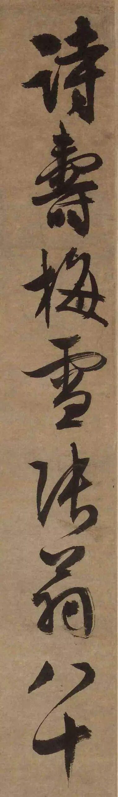历代书法吴琚《七言绝句诗轴》2此幅七言绝句书自蔡襄诗,绢本,是少见的宋代挂轴书迹。现藏于台北故宫。 吴字挺拔俊秀,结体和姿态都宗米芾,但是和北宋书家笔笔送到的工夫相较,吴琚的运笔快速强劲、行笔不时出现飞白,显示南宋书家对上下呼应与整体气势追求,甚于每一字的精工与锤鍊。 图文源自网络,如有侵权,请联系删除! (责任编辑:zgshw)2025-10-16