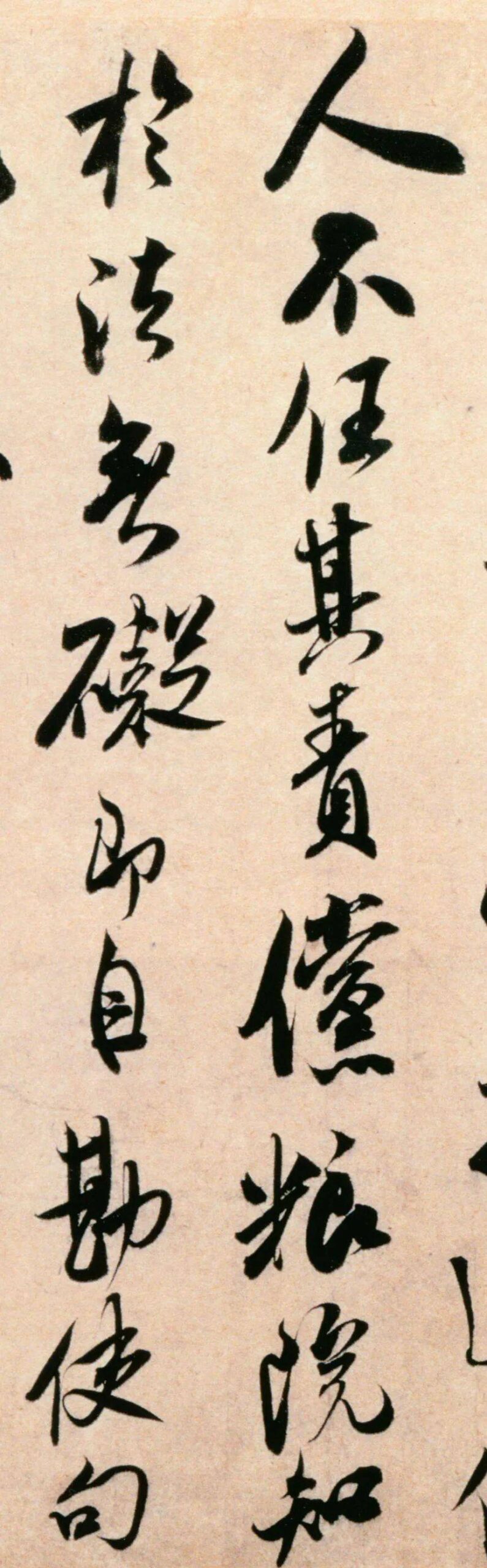 历代书法王铎《录语轴》4王铎《录语轴》 绫本 立轴 墨书 254.2×48.2厘米 故宫博物院藏 释文:云之为体无自心,而能合电章,霑被天下,自彼盘古罔有衰歇之貺。宋公以岱云别号,不独仰景泰翁也。嘘枯洒润,田文明,其望熙亯非棘欤。庚辰夏宵奉,王铎。 此轴录语一段,无鉴藏印。从题款可知此轴作于明崇祯十三年(1640年),王铎时年48岁。此轴题款处距边缘很近,且题款形式也似有...2025-10-15标签:山水画 / 草书