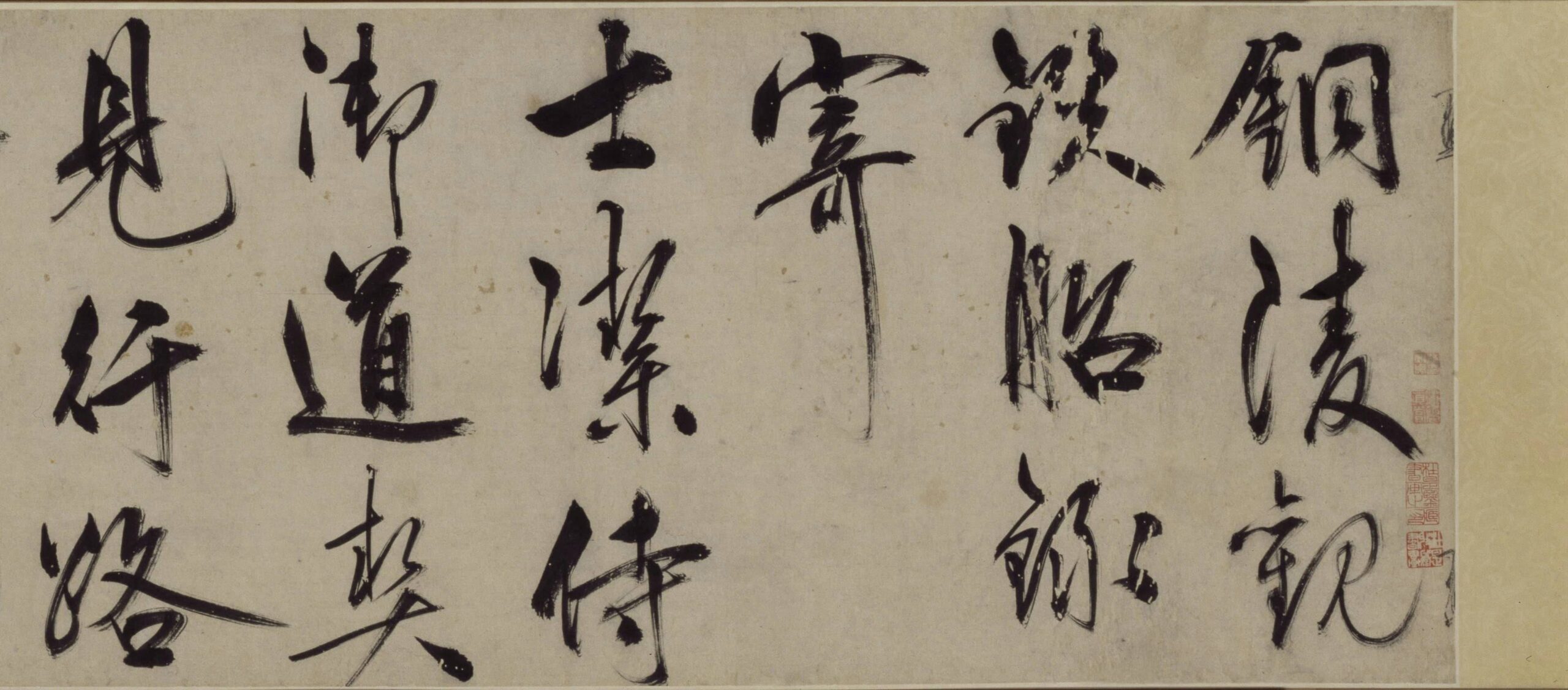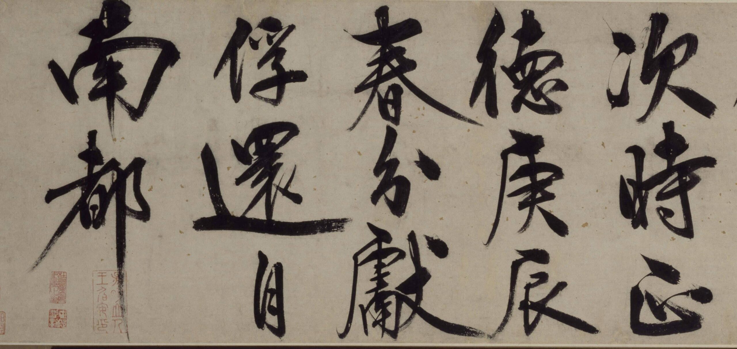 历代书法王守仁《铜陵观铁船歌》卷4王守仁《铜陵观铁船歌》卷,明,纸本,行书,纵31.5厘米,横771.8厘米。北京故宫博物院藏。 署款:“阳明山人书于铜陵舟次,时正德庚辰春分献俘还自南都。”钤印“阳明山人王伯安印”。鉴藏印有“林□周印”、“杜是鉴藏书画之印”、“杜是收藏书画”、“星衍”、“伯渊审定真迹”。 此书是王守仁在铜陵献俘后回南都的舟中所作,由“铁船”引发出内心感慨,感叹人生道路的坎坷...2025-10-14