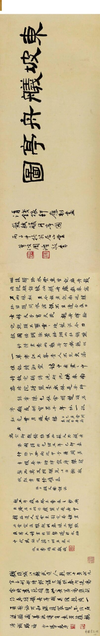 历代国画钱维城《苏轼舣舟亭图》3钱维城《苏轼舣舟亭图》 手卷 设色纸本 引首:26×78 cm. 画:26×74.7 cm. 书:26×17 cm. 钱维城字幼安,一字宗磐,号纫庵,又号稼轩。江苏武进人,乾隆十年一甲一名进士,授翰林院修撰,复迁右中允,转侍讲学士。乾隆十六年擢内阁学士。并屡充会试正、副考官,乾隆二十六年调刑部侍郎,深究律例,对清代律法建议甚多。后尝任浙江学政等职,卒后赠尚书...2025-10-14标签:山水画