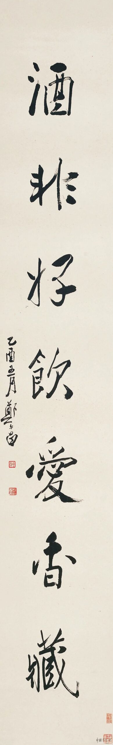 历代书法郑午昌 行书《书不酒非联》3郑午昌 行书《书不酒非联》 立轴 水墨纸本 137×21 cmx2 释 文:书不嫌残贪读买,酒非好饮爱香藏。 题 识:乙酉五月,郑午昌。 钤 印:午昌、郑昶私印、两袖五湖烟水 出 版:1.《藏真·第二卷》,第84页,上海人民美术出版社,2005年版。 2.《上海艺术家》,第239页,上海艺术研究所,2007年版。 3.《名人墨迹六百年》,第500页,上海人民...2025-10-13