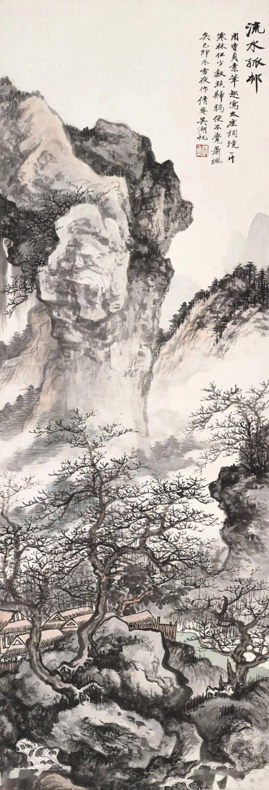 历代国画吴湖帆《流水孤邨图》5吴湖帆的《流水孤邨图》是一幅具有深厚艺术价值和历史意义的作品。 立轴 设色纸本 100×33.5 cm。 吴湖帆(1894~1968),江苏苏州人,擅长中国画,历任上海中国画院画师,上海美术学校、上海美术专科学校、浙江美术学院国画教师,上海大学美术学院副教授、中国美术家协会上海分会副主席。早年与溥儒被称为“南吴北溥”,后与吴子深、吴待秋、冯超然、在...2025-10-09