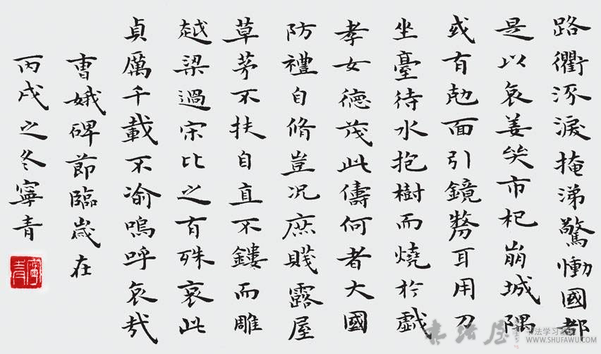 1宁青王羲之《孝女曹娥碑》临习体会 宁青临王羲之《孝女曹娥碑》 《孝女曹娥碑》为王羲之代表作之一。以此为范本,可谓是“取法乎上”。临习此帖的过程中,充分感受到了钟繇朴茂浑厚遗风的熏染,同时也领悟到了王羲之圆劲稳健、秀逸潇散的意趣,每次临习都有新的感悟和收获。只要临池不辍,就一定能较好地把握住魏晋小楷的艺术特点。 一...