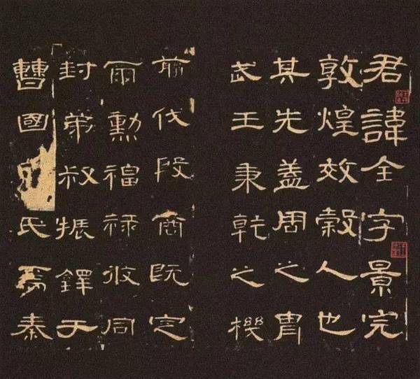 《张迁碑》 1、“方劲古拙,如龟如鳖”。 隶书是从篆书演变而来的,使汉字从原来的单一的笔画发展成为多变的笔画,把篆书圆转笔画变为了方折,所以有篆圆隶方的说法,而隶书是比较古老的字体,它的笔画要写得古朴、苍老,给人一种沧桑残缺美,方劲古拙道出了隶书的概貌。篆书和楷书多取纵势,形状成竖长方形,使笔画纵向延伸;而隶书字形较扁,笔画向横的方向发展,用扁形动物龟...