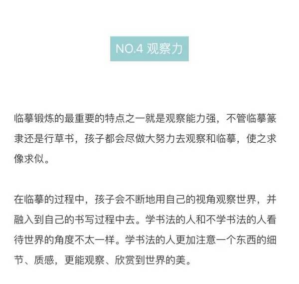 7原标题:书法对小学生专注力、分析力的“疗效”! NO.1想象力 写字的时候,我们可以随心 所欲地、不受限制地去思考字本身的姿态、神态。 爱因斯坦说过:“想象力比知识还重要,因为知识是有限的,而想象力概括着世界上的一切,推动着进步,并且是知识进化的源泉。”因此,大胆丰富的想象,是艺术创造、科学发明的必要因素。有才能的科学家、艺术家都是富于联想的,他们在深...