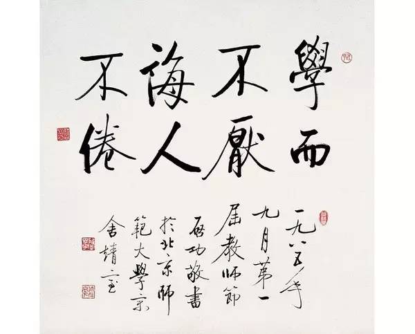 启功《学而不厌 诲人不倦》(一九八五年作)6原标题:启功《学而不厌 诲人不倦》(一九八五年作) 启功《学而不厌 诲人不倦》(一九八五年作) 我从幼小识字时,即由我的祖父自己写出字样,教我学写。先用一张纸写上几个字,教我另用一张较薄的纸蒙在上边,按着笔画去写。稍后,便用间隔的办法去写,这个方法是一行四个字,第一、第三处由我祖父写出,第二、第四处空着。我用薄纸摹写时,一三字是照着描,二四字是仿着写。从此逐...2026-04-21