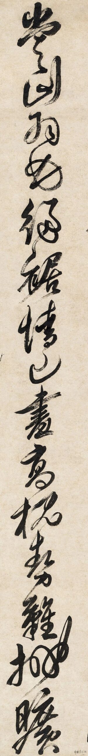 黄道周 草书《闻警出山诗》4黄道周 草书《闻警出山诗》 立轴 水墨纸本 157.5×45 cm 释 文:沧流看欲倒,一苇岂能豪。聊自见真性,何尝计羽毛。绝裾情已尽,高枕势难抛。旷野青天下,沽濡安所逃。 钤 印:黄道周印、石斋 题 识:丙子冬,闻警出山,似薇仲兄契,黄道周。 鉴藏印:雪庐过眼、苍雪吟□藏书画记、曾经啸余庐藏、青芝老人鉴赏 出 版:《晋唐五代宋元明清名家书画集》第213页,...2025-10-08
