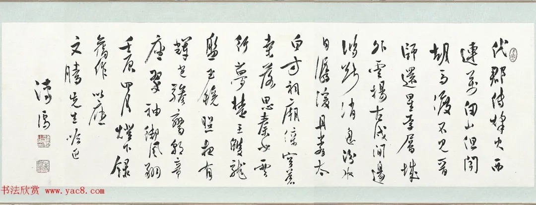 溥儒行书旧作五言诗卷4爱新觉罗·溥儒(1895-1963),字心畲,号西山逸士。曾留学德国学天文学和生物学。画工山水、兼擅人物、花卉,与张大千有“南张北溥”之誉。书法上与郑诵先等共为北方书坛的台柱人物。在当时的北京是声誉极高的文化名人。 民国溥儒行书旧作五言诗卷,台北故宫博物院藏。 释文:代郡传烽火。西连万仞山。但闻胡马渡。不见晋师还。星索层城外。云扬古戍间。边鸿断消息。汾水日潺...2025-09-19