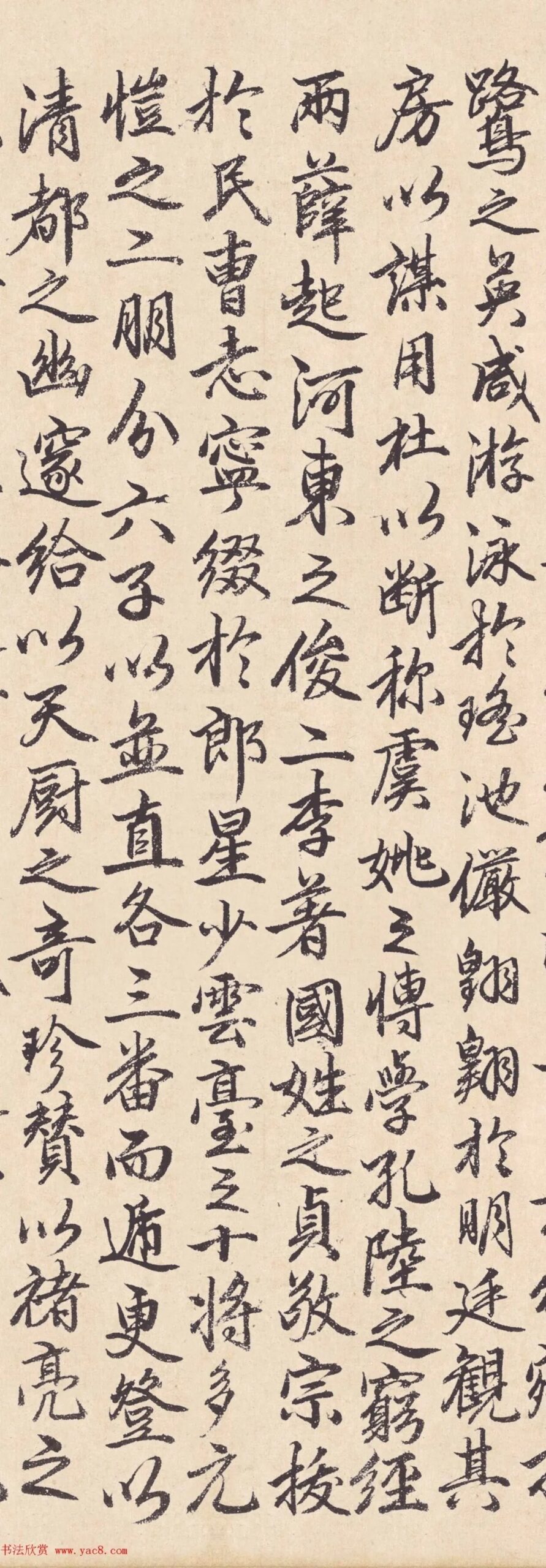4赵奕书法《吴兴山水清远图记》,上海博物馆藏。 赵奕,字仲光,湖州人。赵孟頫季子,雍弟。隐居不仕,日以诗酒自娱。工楷、行、草书。其书恪守家法,能得孟頫神髓,而结体更为随意多变,气息散淡隽雅。