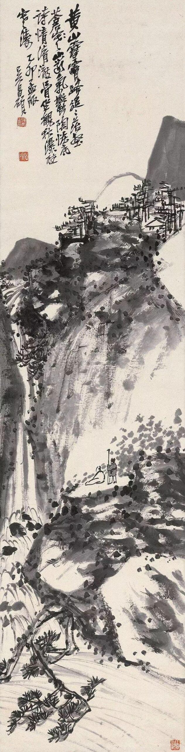 髡残论画:从来泼墨是抛空,唾落成花默默中 雨洗山根图轴 石谿(1612~?)明末清初画家,清初四僧之一。俗姓刘,武陵人,居南京。幼年丧母,遂出家为僧。法名髡残,字介丘,号白秃,一号残道者、电住道人、石道人。 擅绘人物、花卉,尤其精于山水。他宗法黄公望、王蒙,绘画基础出于明代谢时臣,其技法直追元代四大家,上及北宋的巨然。山水画章法稳妥,繁复严密,郁茂而不迫塞,...