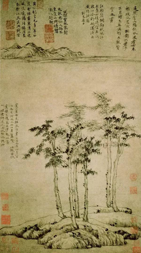 1【名称】元倪瓒《六君子图 》 【类别】中国古画元倪瓒六君子图 【年代】元代 【材质】纸本,水墨。 【规格】纵:61.9厘米,横:33.3厘米。 【文物原属】私人收藏 【文物现状】上海博物馆藏 【主要介绍】 《六君子图》,该藏品上有倪瓒自题:“卢山甫每见辄求作画,至正五年四月八日,泊舟弓河之上,而山甫篝灯出此纸,苦征余画,时已惫甚,只得勉以应之。大痴(黄公望)...