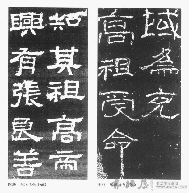 1东汉隶书的用笔 方笔圆笔:对于汉碑隶书的用笔,有方笔、圆笔之说。由于大盆汉简的出土,能看到汉人的墨迹,讨论汉隶的用笔,本可以不以铭石为对象,因为铭石书已经过刻工的再加工,已有刀法的参与,有些更是不按书迹原貌来刊刻的,这样也就谈不上所谓笔法了。前人学汉隶,都取法东汉后期的一些名碑,这些碑刻上的字很工整,笔画经刊刻后,起讫、转折处都较有棱角,呈方形,故认为作隶书...