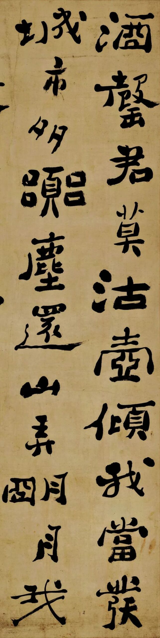 历代书法郑板桥《五言诗》3郑板桥《五言诗》,本诗卷充分体现了郑板桥书法上出规入矩,融篆、隶、楷、行各体于一炉,面目奇异,夸张字形的形态和重心变化的书法体。单个字形式上呈横扁、左低右高,有篆隶古朴苍劲的金石味道。 【释文】 酒罄君莫沽,壶倾我当发。城市多嚣尘,还山弄明月。我虽不善书,知书莫如我。苟能得其意,窃谓不学可。乾隆丙子秋,板桥郑燮。 罄(qìng)1、古代击乐器。2、引申为尽,...2025-11-03