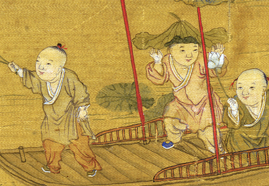 冷枚在《百子图》中展现出了极高的绘画技艺,用笔细腻、精工设色妍丽清秀,将每一个孩子的形象都刻画得入木三分。