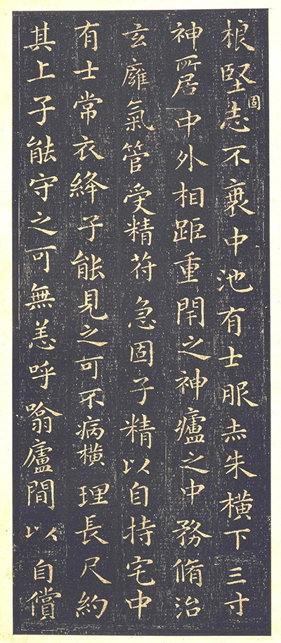 在字的内部空间分布方面,疏密安排得恰当合适,有的字内宫收紧,其笔画紧密地相互依存,如“宫”字犹如一座布局精巧的庭院,紧凑却不显得局促;有的字则是外紧内松,像“灵”字中间留有空白,空灵的气息四处弥漫,恰如山间云雾缭绕的仙洞,给人留下无尽的遐想。